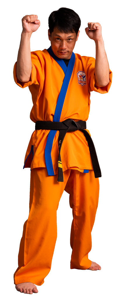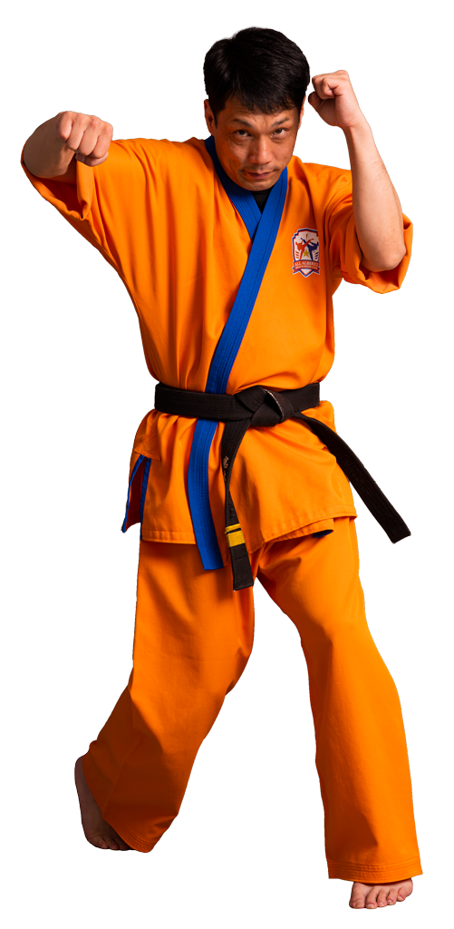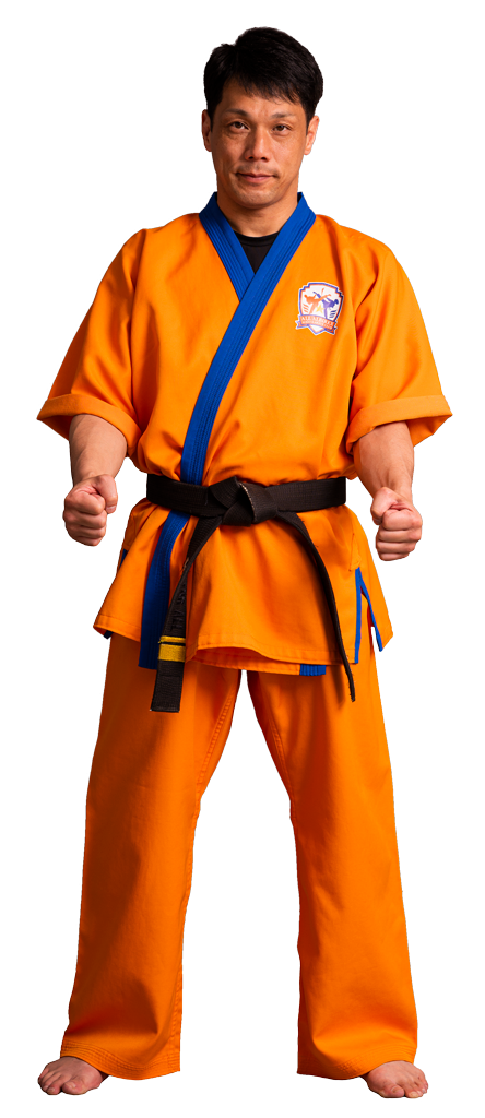 夢源会の正式な道着です。総合空手を提唱する夢源会では、組み技、投げ技もあるため独自に開発された道着を着用しています。